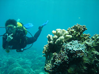 We go diving~ Look at the calm sea, almost mirror-like calm. Makes you feel so peaceful and calm looking at the sea. Here were Alex, George and Philip.